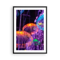 Plakat i sort ramme - Farverige, futuristiske vandmænd i neonlys - 50x70cm - Lysende springvand - Moderne vægdekoration til stue og soveværelse ARTTOR