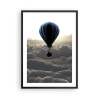 Plakat i sort ramme - En sort ballon, der svæver over skyerne - 50x70cm - Vandringsmand over skyerne - Moderne vægdekoration til stue og soveværelse ARTTOR