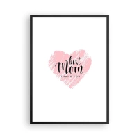 Plakat i sort ramme - Lyserødt hjerte med tekst på en hvid baggrund i minimalistisk stil - 50x70cm - Altid det rette øjeblik - Moderne vægdekoration til stue og soveværelse ARTTOR