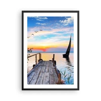Plakat i sort ramme - Søbroen ved solnedgang - 50x70cm - Godaften - Moderne vægdekoration til stue og soveværelse ARTTOR