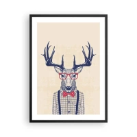 Plakat i sort ramme - Stilfuld hjort med briller og butterfly på en beige baggrund - 50x70cm - Et underholdende ekstravaganza - Moderne vægdekoration til stue og soveværelse ARTTOR