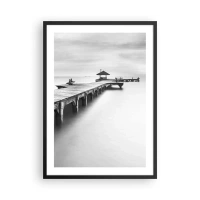 Plakat i sort ramme - En sort og hvid mole over et roligt hav - 50x70cm - Ind i det fjerne - Moderne vægdekoration til stue og soveværelse ARTTOR