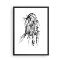 Plakat i sort ramme - Skitse af en hest i en dynamisk positur - 50x70cm - I en yndefuld trav - Moderne vægdekoration til stue og soveværelse ARTTOR
