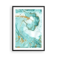 Plakat i sort ramme - Turkis og guld abstraktion i marmorstil - 50x70cm - Under den store bølge i Edo-perioden - Moderne vægdekoration til stue og soveværelse ARTTOR