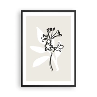 Plakat i sort ramme - Minimalistisk blomstertegning - 50x70cm - Skitse til et herbarium - Moderne vægdekoration til stue og soveværelse ARTTOR