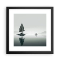 Plakat i sort ramme - Et ensomt træ på en ø med en refleksion i vandet - 50x70cm - En drøm - Moderne vægdekoration til stue og soveværelse ARTTOR