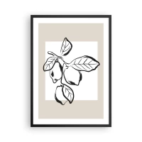 Plakat i sort ramme - En minimalistisk illustration af en citrongren i sort-hvid stil. - 50x70cm - Hvor citronen modner... - Moderne vægdekoration til stue og soveværelse ARTTOR