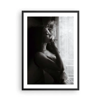 Plakat i sort ramme - En kvinde i lingeri, der ryger en cigaret i sort og hvid - 50x70cm - Et sensuelt øjeblik - Moderne vægdekoration til stue og soveværelse ARTTOR