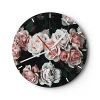 Vægur, Uret - En buket lyserøde roser på en mørk baggrund - 30x30cm - Lyserød ansamble - Moderne vægdekoration til stue, køkken og soveværelse ARTTOR