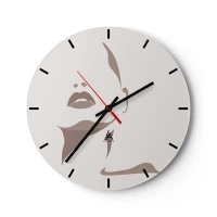Vægur, Uret - Et minimalistisk portræt af en kvinde i beige nuancer. - 30x30cm - Skabt af lys og skygge - Moderne vægdekoration til stue, køkken og soveværelse ARTTOR