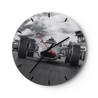 Vægur, Uret - En racerbil i bevægelse på en racerbane - 30x30cm - Der er kraft! - Moderne vægdekoration til stue, køkken og soveværelse ARTTOR