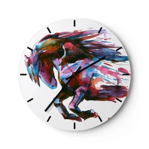 Vægur, Uret - En dynamisk hest i akvarelfarver med en flagrende manke - 30x30cm - I henrykkelse - Moderne vægdekoration til stue, køkken og soveværelse ARTTOR