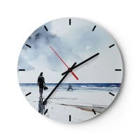 Vægur, Uret - En figur på stranden kigger ud over havet - 30x30cm - Samtale med havet - Moderne vægdekoration til stue, køkken og soveværelse ARTTOR