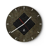 Vægur, Uret - Gyldne linjer, der danner en rombe på en sort baggrund - 30x30cm - Geometri i glamour-stil - Moderne vægdekoration til stue, køkken og soveværelse ARTTOR