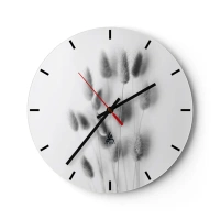Vægur, Uret - Sort-hvid komposition med græsser på en lys baggrund - 30x30cm - Dens bløde græs - Moderne vægdekoration til stue, køkken og soveværelse ARTTOR