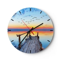 Vægur, Uret - En mole ved søen i den nedgående sols stråler - 30x30cm - Tid til at tage tilbage... - Moderne vægdekoration til stue, køkken og soveværelse ARTTOR