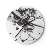 Vægur, Uret - Sort-hvid skitse af en elegant kvinde med briller og hat. - 30x30cm - Dame med karakter - Moderne vægdekoration til stue, køkken og soveværelse ARTTOR