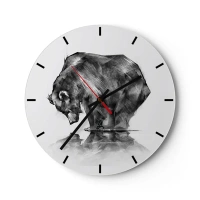 Vægur, Uret - Sort-hvid tegning af en bjørn ved vandet - 30x30cm - Dejligt at se nogen tæt på - Moderne vægdekoration til stue, køkken og soveværelse ARTTOR