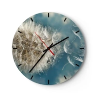 Vægur, Uret - En mælkebøtte mod en blå himmel med flydende frø - 30x30cm - En engels åndedræt - Moderne vægdekoration til stue, køkken og soveværelse ARTTOR