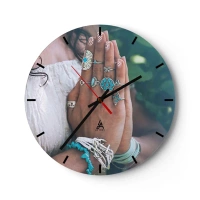 Vægur, Uret - Hænder med boho smykker mod en naturlig baggrund - 30x30cm - Velkommen til værens centrum - Moderne vægdekoration til stue, køkken og soveværelse ARTTOR