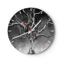 Vægur, Uret - Et tørt træ mod en baggrund af mørke skyer i monokromatiske toner - 30x30cm - Primær og hellig - Moderne vægdekoration til stue, køkken og soveværelse ARTTOR