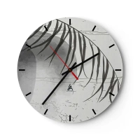 Vægur, Uret - Sort og hvid palme med måneskygge mod betonbaggrund - 30x30cm - Den subtile eksotisme i naturen - Moderne vægdekoration til stue, køkken og soveværelse ARTTOR