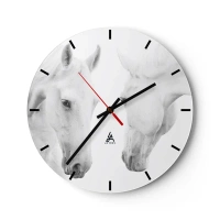 Vægur, Uret - To hvide heste står overfor hinanden på en hvid baggrund - 30x30cm - Er dette venskab...? - Moderne vægdekoration til stue, køkken og soveværelse ARTTOR