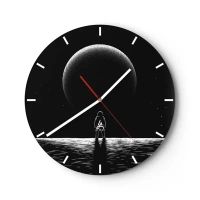 Vægur, Uret - Silhuet af en astronaut foran en stor planet i rummet - 30x30cm - Ansigt til ansigt - Moderne vægdekoration til stue, køkken og soveværelse ARTTOR