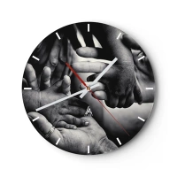 Vægur, Uret - Hænder rører hinanden i en gestus af enhed - 30x30cm - At være menneske - Moderne vægdekoration til stue, køkken og soveværelse ARTTOR