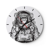 Vægur, Uret - En sort-hvid skitse af en abe-astronaut. - 30x30cm - Alternativ evolution - Moderne vægdekoration til stue, køkken og soveværelse ARTTOR
