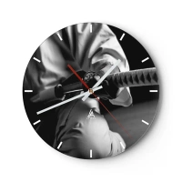 Vægur, Uret - En hånd med et samuraisværd i sort og hvid - 30x30cm - En krigers sjæl - Moderne vægdekoration til stue, køkken og soveværelse ARTTOR