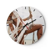 Vægur, Uret - En kvinde med udsmykkede smykker mod en baggrund af sand og lys - 30x30cm - Dronning af den vilde strand - Moderne vægdekoration til stue, køkken og soveværelse ARTTOR
