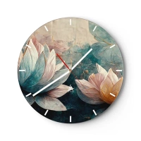 Vægur, Uret - Lotusblomster mod baggrunden af søens grønblå overflade - 30x30cm - Søens stjerner - Moderne vægdekoration til stue, køkken og soveværelse ARTTOR