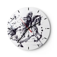 Vægur, Uret - Sort og hvid akvarel hesterytter - 30x30cm - Sort ridder - Moderne vægdekoration til stue, køkken og soveværelse ARTTOR
