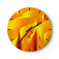 Vægur, Uret - Abstrakte gyldne former, der ligner bølger af lys - 30x30cm - Som solens bølger - Moderne vægdekoration til stue, køkken og soveværelse ARTTOR