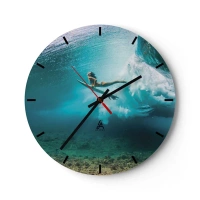 Vægur, Uret - En surfer rider på en bølge i krystalklart vand - 30x30cm - Undervandsverden - Moderne vægdekoration til stue, køkken og soveværelse ARTTOR