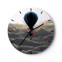Vægur, Uret - En varmluftballon svæver over skyerne ved solopgang. - 30x30cm - Vandringsmand over skyerne - Moderne vægdekoration til stue, køkken og soveværelse ARTTOR