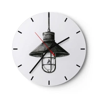 Vægur, Uret - Sort industriel pendellampe på hvid baggrund - 30x30cm - Som for mange år siden... - Moderne vægdekoration til stue, køkken og soveværelse ARTTOR