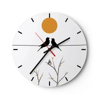 Vægur, Uret - To fugle på en gren under en orange sol - 30x30cm - Nattergal - Moderne vægdekoration til stue, køkken og soveværelse ARTTOR
