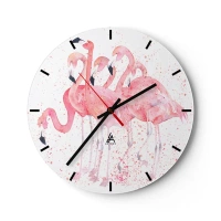 Vægur, Uret - En gruppe lyserøde flamingoer i en kunstnerisk akvarelstil. - 30x30cm - Lyserød ansambl - Moderne vægdekoration til stue, køkken og soveværelse ARTTOR