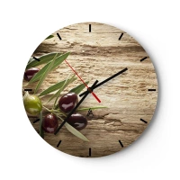 Vægur, Uret - Olivengren på en træbaggrund - 30x30cm - Lige fra naturen - Moderne vægdekoration til stue, køkken og soveværelse ARTTOR