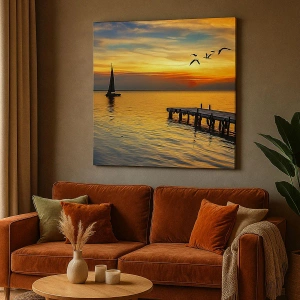 Lærredstryk - Billede på lærred - Returnering om aftenen - 70x70 cm
