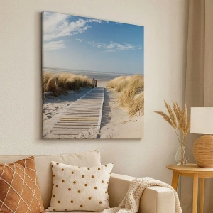 Motivet af en **træsti**, der fører gennem klitterne, symboliserer fred, rejser og nærhed til naturen. Det er det perfekte valg for dem, der ønsker at tilføre lidt feriestemning til deres interiør. Dette maleri dekorerer ikke kun, men inspirerer også drømme om rejser og afslapning.