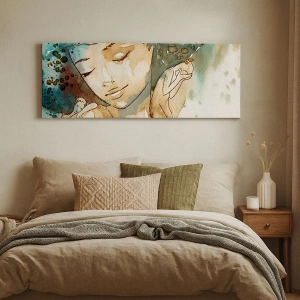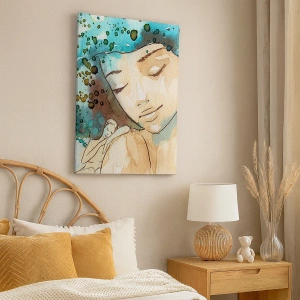 Lærredstryk - Billede på lærred - Lady in blue - 140x50 cm