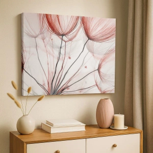 Lærredet er spændt op over rammen. Siderne og kanterne trykkes for at danne en fortsættelse af billedet. Maleriet er klar til at blive hængt op på væggen. Hvert produkt har en bøjle, der er fastgjort til rammen, og et samlesæt (skrue + dyvel).