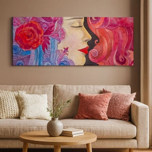 Lærredstryk - Billede på lærred - Farverig profil af en kvinde i kunstnerisk stil - 70x50cm - Art Nouveau er stadig i live - Moderne vægdekoration til stue og soveværelse ARTTOR
