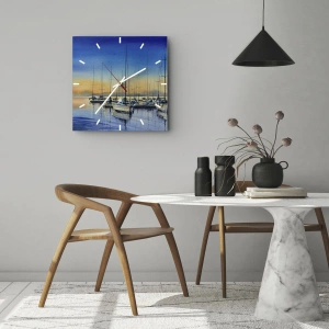 Vægur, Uret - Sejlbåde på vandet ved solnedgang i en stille havn - 30x30cm - Slutningen på en god dag - Moderne vægdekoration til stue, køkken og soveværelse ARTTOR