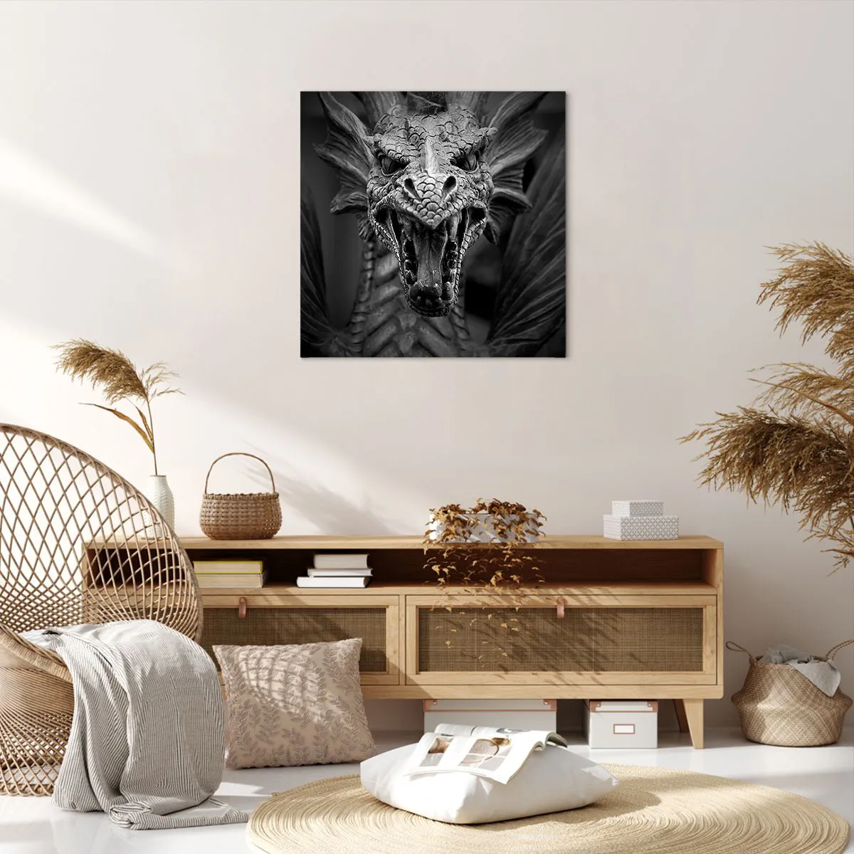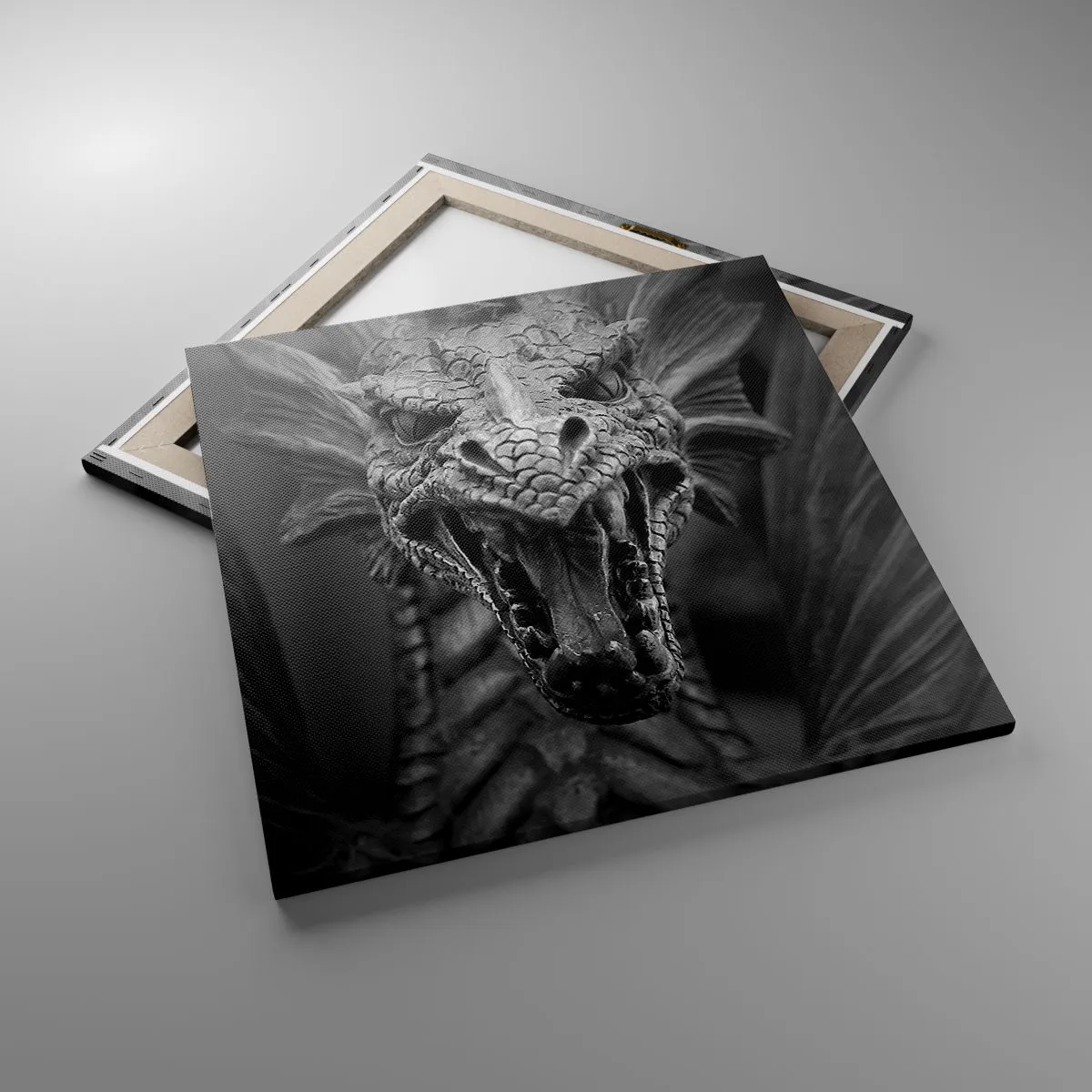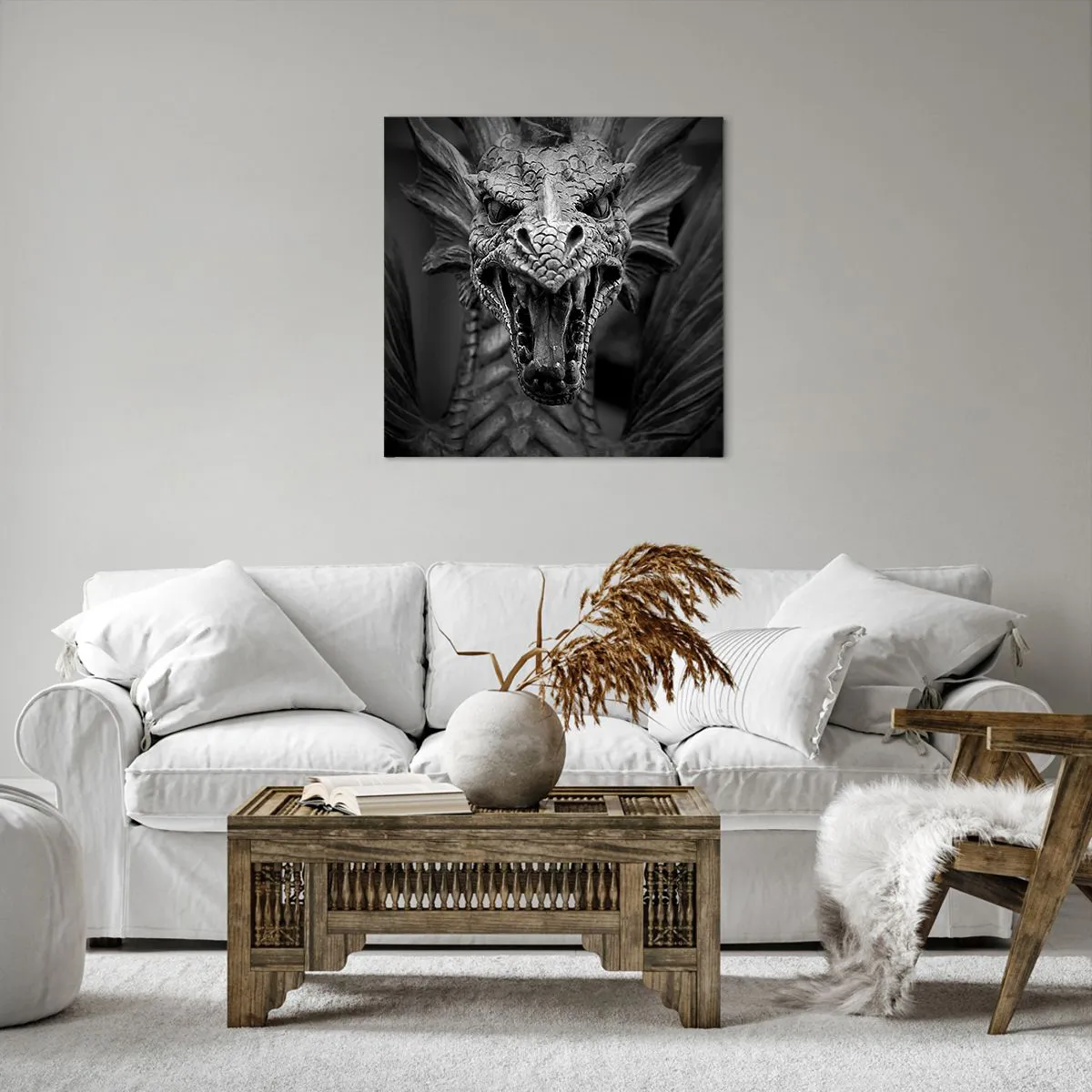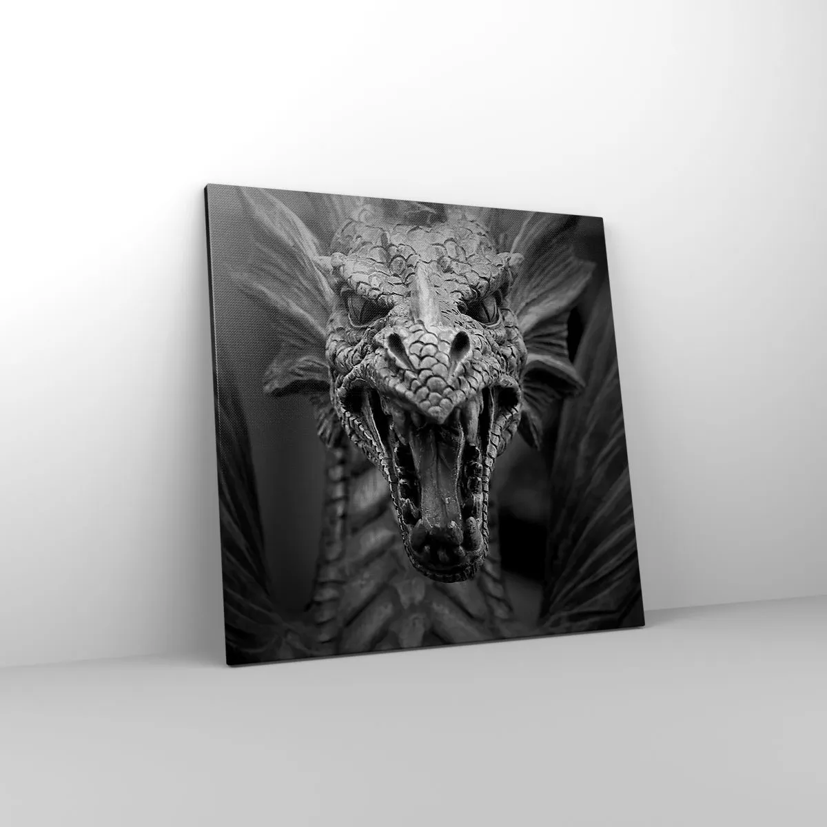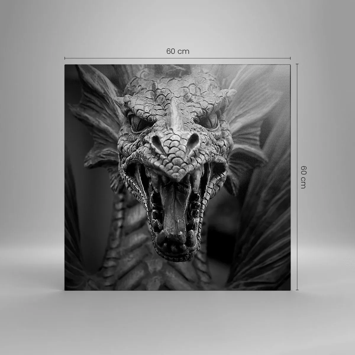 Lærredstryk - Billede på lærred - Eventyrlig drage i grå - 60x60 cm