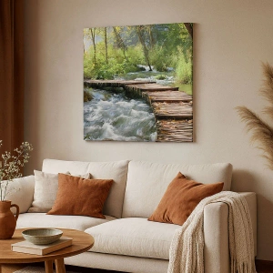 Broen leder øjet ind i landskabet og symboliserer en rejse og opdagelsen af nye stier. Takket være den realistiske gengivelse af detaljer som træets tekstur eller lysets refleksioner på vandoverfladen giver maleriet indtryk af ægte natur transporteret ind i interiøret. Det er et ideelt valg for natur- og økologielskere.