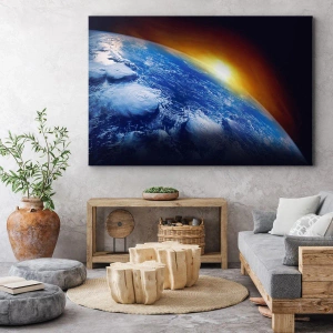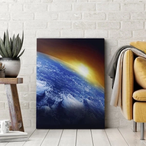 Lærredstryk - Billede på lærred - Solopgang over den blå planet - 60x60 cm